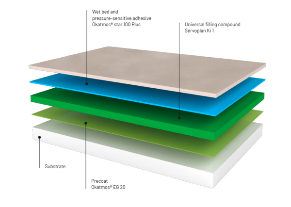Ceramic tiles and natural stone are sustainable materials for the construction industry. They last a lifetime. These properties are underscored by the use of the right adhesive materials: They are manufactured in an energy-efficient way, barely pollute the surrounding areas with emissions and are designed such that they can be applied ergonomically with a minimal application rate.
