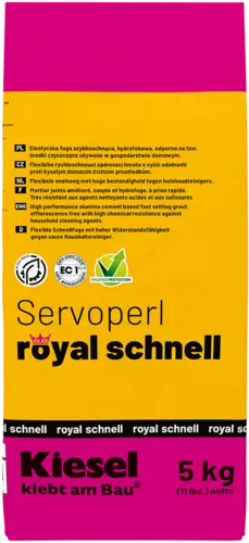 | Servoperl royal schnell Fast-setting, flexible, water and dirt repellent grout | 8 | 10 mm | X | X | X | (X) | X | X | X |