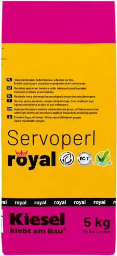 | Servoperl royal Flexible, water and dirt-repellent grout | 5 | 10 mm | X | X | X | X | (X) | (X) | (X) |